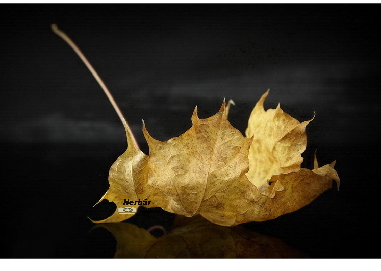 Veľmi pekná! Len potvrdzuje starú známu pravdu, že v jednoduchosti je krása. Úplne stačí jeden jesenný list, ktorý sa krásne vyníma na tmavom pozadí.
