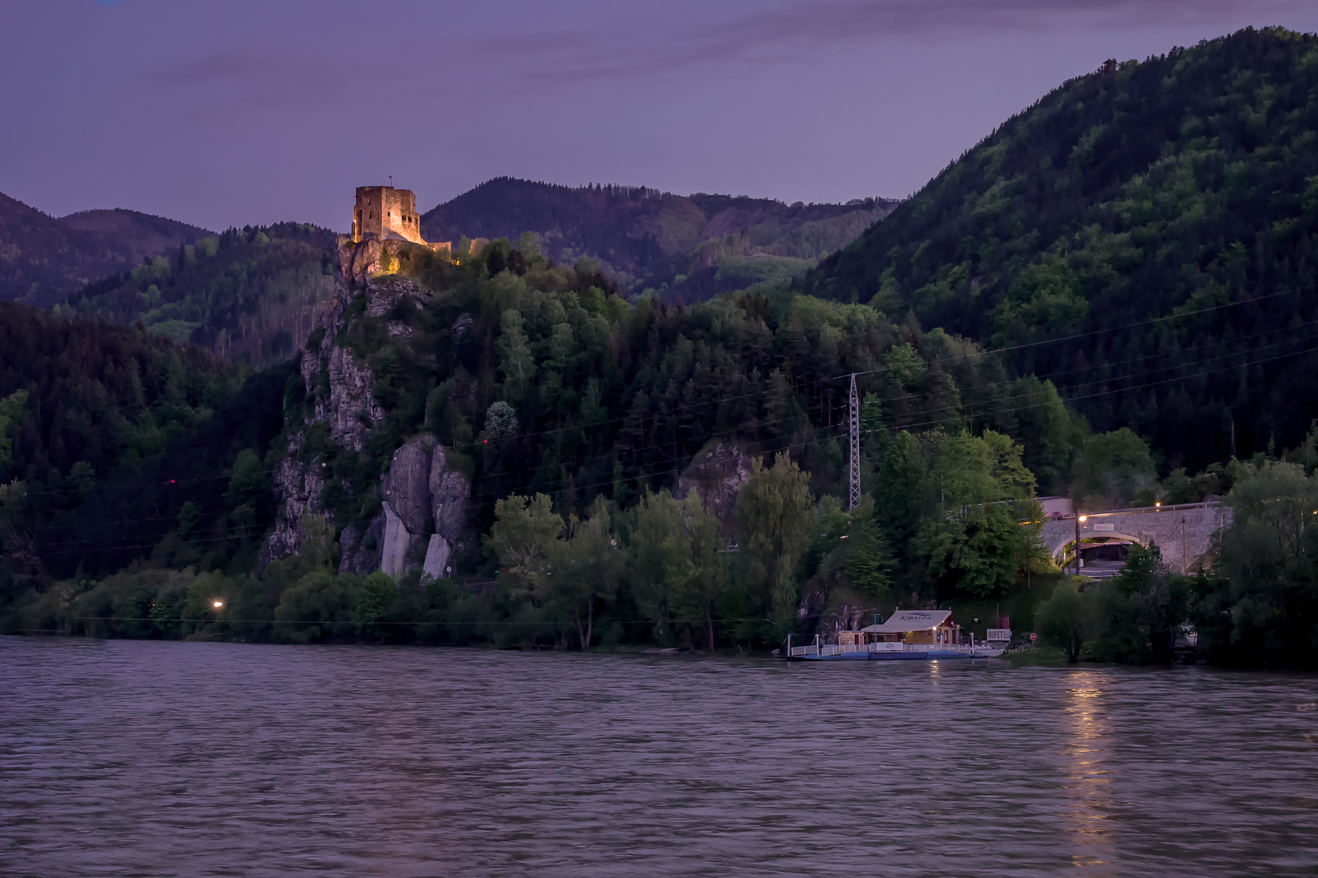 hrad krásně svítí